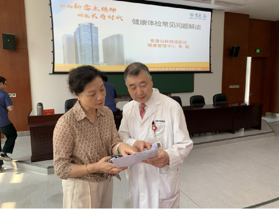 朱主任从体检前注意事项、体检套餐选择、体检报告常见问题、16种肿瘤标志物详解等几个方面进行了详细的介绍。针对老师们比较关注的肺结节、高血压病、糖尿病、高脂血症、肿瘤早期筛查等问题,朱主任现场解答了大家的提问,并分别为老师们详细解读了体检报告中出现的问题,提醒大家重视健康体检、个性化体检、改变生活方式、早发现早诊断早治疗。此次活动受到了市委党校工会领导和老师们的一致好评。